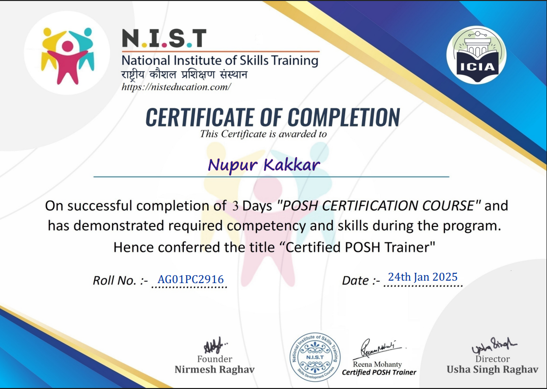 With 20 years of experience in corporate, international organizations, and NGOs, Nupur is a highly skilled Communication Coach, ESL (English as a Second Language) Teacher, and Education Advocate. She is passionate about empowering individuals globally by offering personalized coaching, tailored lesson plans, and effective strategies to improve communication skills and drive personal growth. Whether you’re looking to master English, boost your career, or increase your confidence, Nupur provides the expertise and support you need to thrive. Her latest accomplishment is becoming a certified Posh & POCSO Trainer.